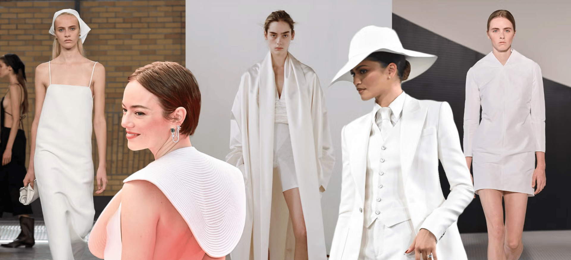 Pantone just named white—specifically “Cloud Dancer”—as the color of 2026, calling it a calming antidote to cultural chaos. But in fashion, white is anything but serene: designers are already opening shows with stark all-white looks, a choice that reads more shock-to-the-system than peaceful reset.